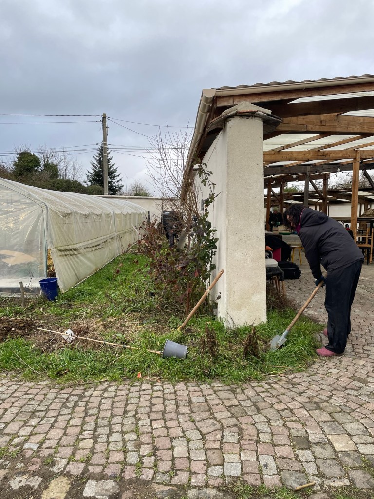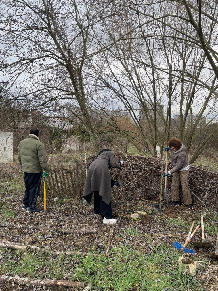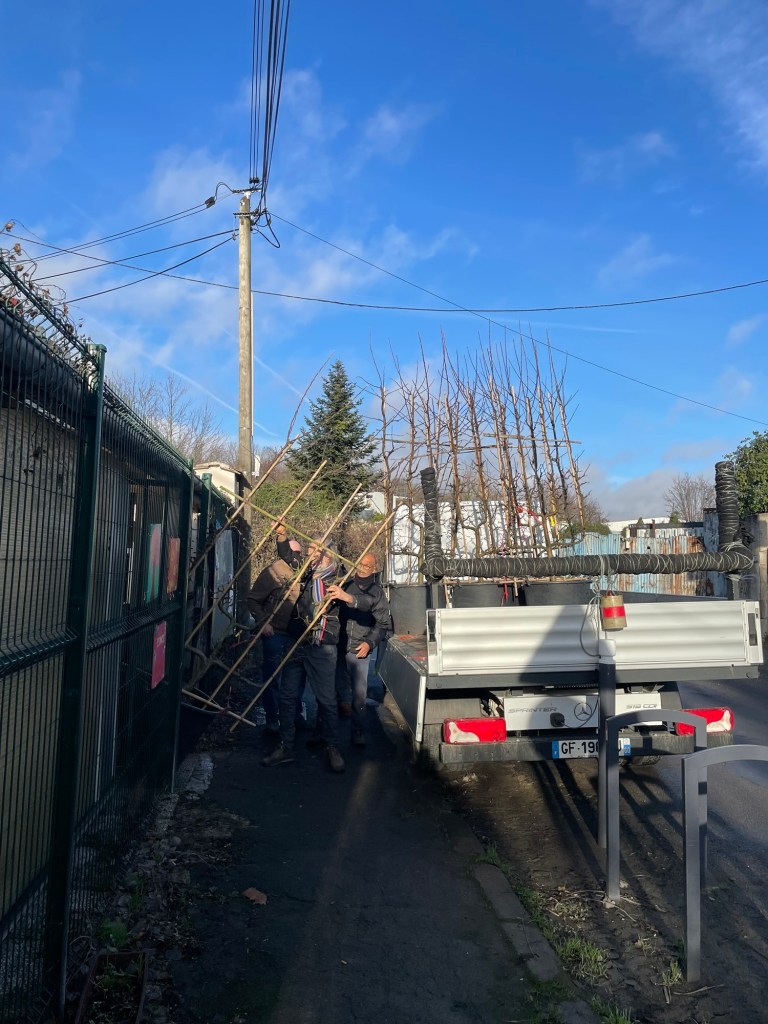 Ce jour là une journée solidaire était organisée par Uniscités. Les associations APEC et Clubhouse sont venues planter des arbres, et aussi ranger, nettoyer, faire une signalétique, et plus particulièrement aider l’association Les Plantules qui partage le jardin avec Fruits Défendus.