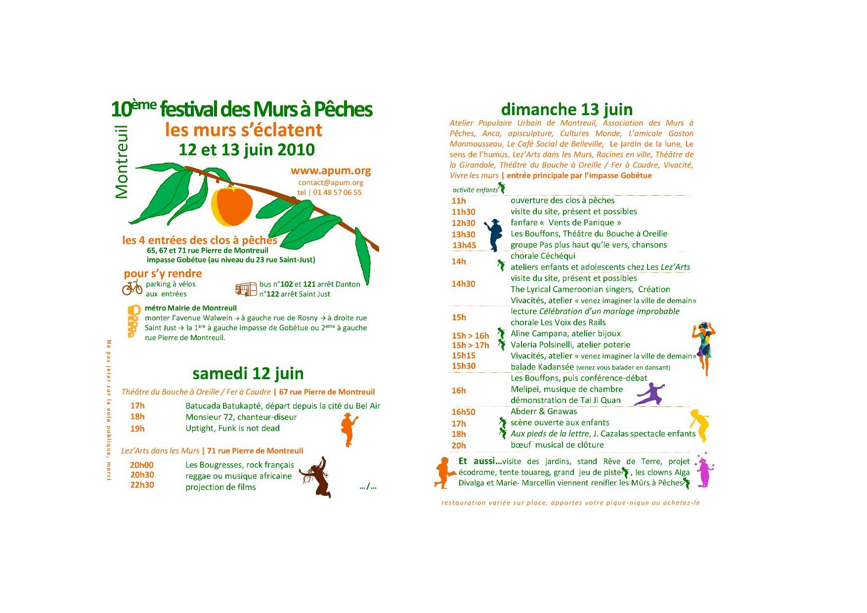 * débattre sur le présent et le futur du quartier des Murs à Pêches : débat : le dimanche 13 juin à 16h00 rotonde du Fer à Coudre