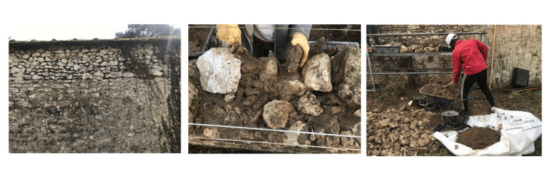 Tous les murs sont à Thomery maçonnés avec de la « terre de la fouille » dit Jean-Marie Ecorchard en 1849 dans Culture et taille de la vigne. Ainsi durant le chantier, le travail de la maçonnerie à la terre a été mis à l’honneur suivant les principes historiques.