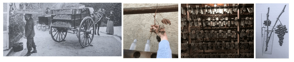 L’autre découverte des agriculteurs de Thomery est la conservation des grappes à rafles sèches puis fraîches. Après la récolte, les grappes coupées sur une rafle (tige) avec un œil de pousse en dessous et un œil de pousse au-dessus, étaient placées dans de petits récipients remplis d’eau et de charbon, dans une pièce froide plongée dans l’obscurité. Ces chambres à raisins permettaient, avec un travail minutieux et quotidien (on ciselait chaque grain abîmé pour ne pas contaminer toute la grappe), de conserver les grappes fraîches de septembre à avril. Thomery assurait ainsi une production de vin de table de luxe toute l’année.