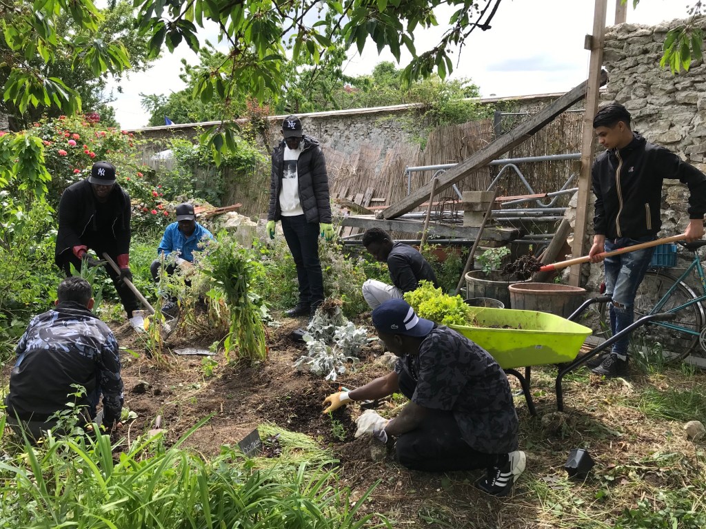Jeudi 12 mai 2022, 13 Mineurs Non Accompagnés pris en charge par l’Aide Sociale à l’Enfance et Emmaüs Alternatives sont venus aux Murs à Pêches découvrir la maçonnerie du patrimoine et l’horticulture.