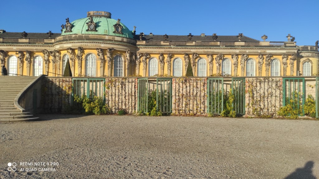 Le Palais de Sanssouci a été bâti entre 1745 et 1747. C’est l’ancien palais d’été du roi de Prusse Frédéric II. Cette immense villa où l’on parlait français, où étaient organisées des tabagies et où Voltaire séjourna est d’abord liée à un projet viticole.