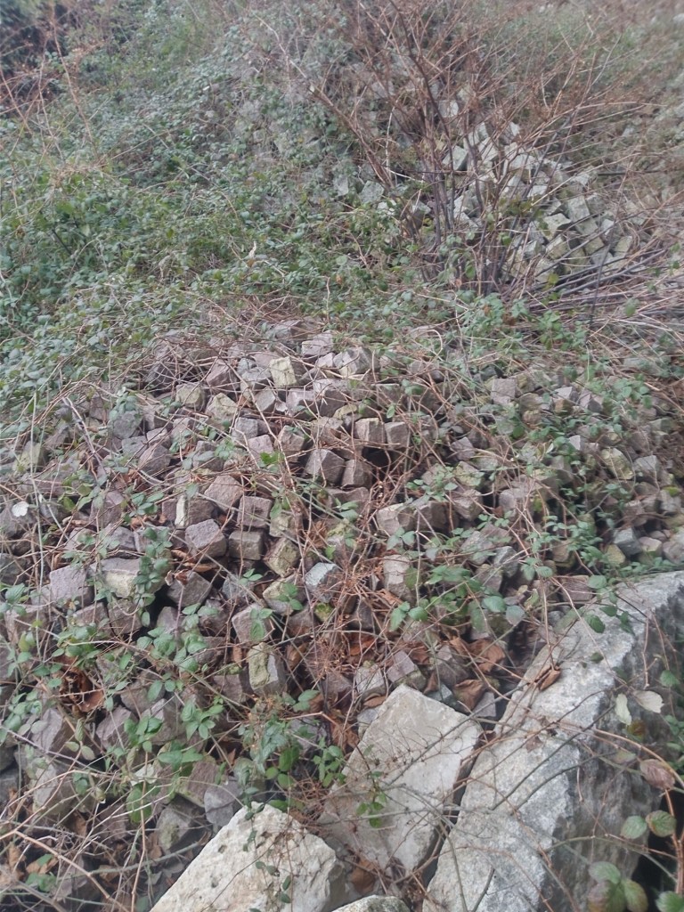 3 bennes de camions ont été remplies des pavés de récupération sur le dépôt du département et bennées directement sur site en vrac, soit environ 16m3, représentant approximativement 40 tonnes de pierres.