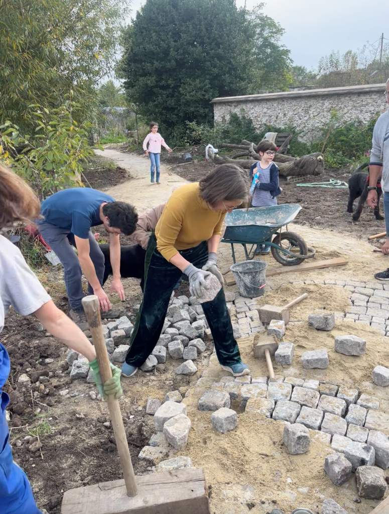 Merci aux fruits défendus de nous avoir accueilli et de nous avoir aidé et choyé tout au long du chantier, au plaisir de remettre le couvert. Ou plutôt les brouettes, les râteaux, les pêles, les maillets, les massues, et les pavés !
