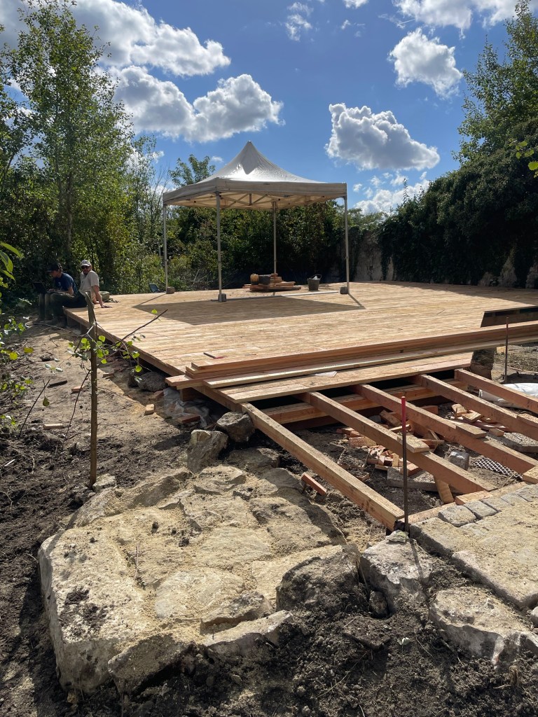 Pendant ce temps, l’équipe de charpentiers menée par Constantin Vaysset, construit une terrasse.