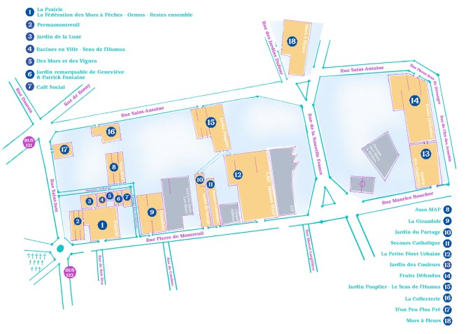 🌸 Les parcelles ouvertes seront : Le sens de l’humus, Racines en ville, Des Murs et des Vignes, Jardin de Patrick Fontaine, Café social avec Culture(s) en herbe, Jardin de la Lune, Les orvets, Asso Map, La Girandole, SRHM, le jardin du partage, le secours catholique, La petite forêt urbaine, le jardin des couleurs, fruits défendus, d’un peu plus pré, Murs à fleurs.