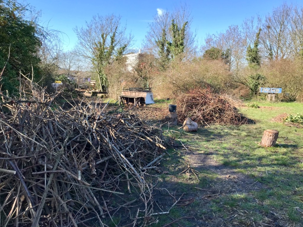 Le bois a été récolté sur différentes parcelles des Murs à pêches, apporté ou cherché chez des voisins.