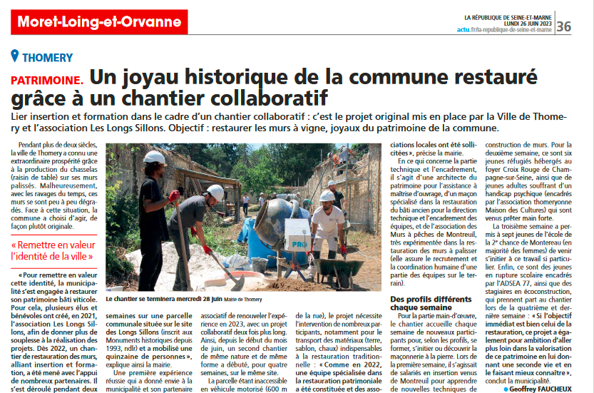 Chantier en Ile-de-France- Murs à pêches, Montreuil du 6 au 19 juillet