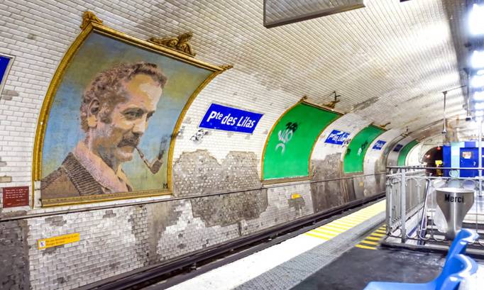 A la station Porte des Lilas, les 3 mosaïques (Georges Brassens, lilas bleus, lilas roses) sont en danger de disparition lors de la réfection du carrelage.