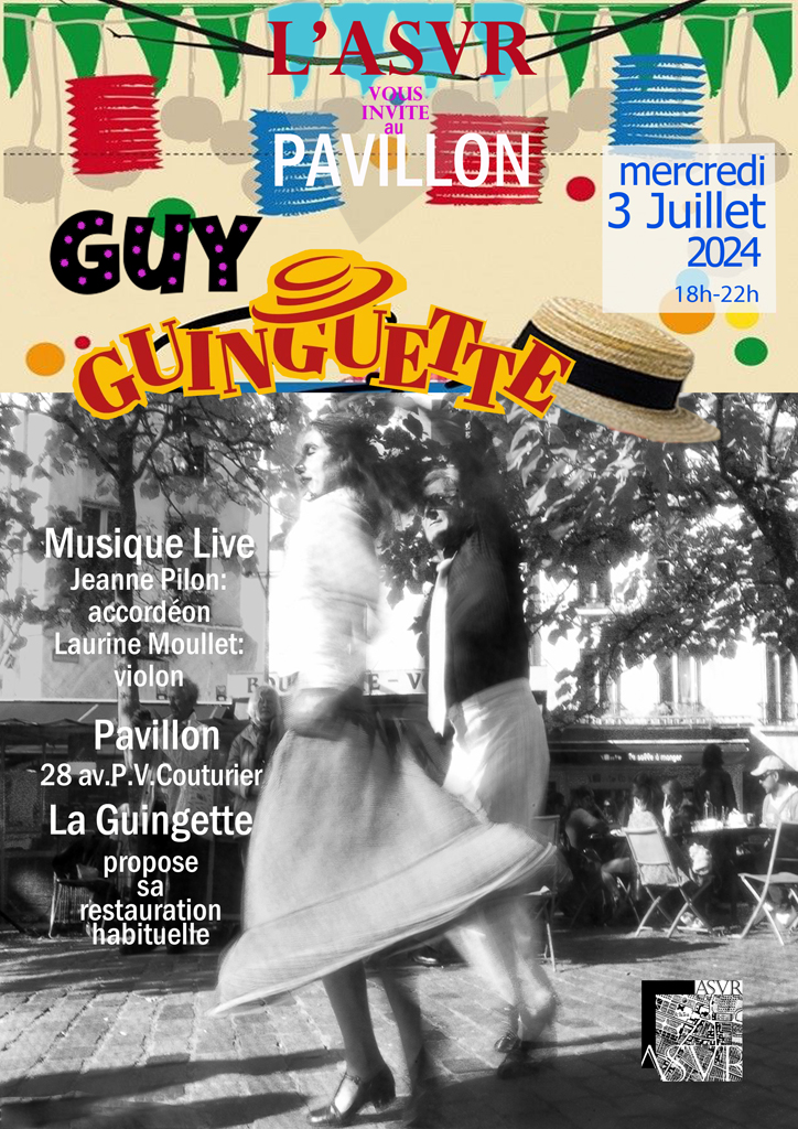 L’ASVR vous invite à la Guinguette du Pavillon à partir de 18h le mercredi 3 juillet pour une soirée en hommage à Guy Auzolles, historien érudit de Romainville et amateur de guinguettes !