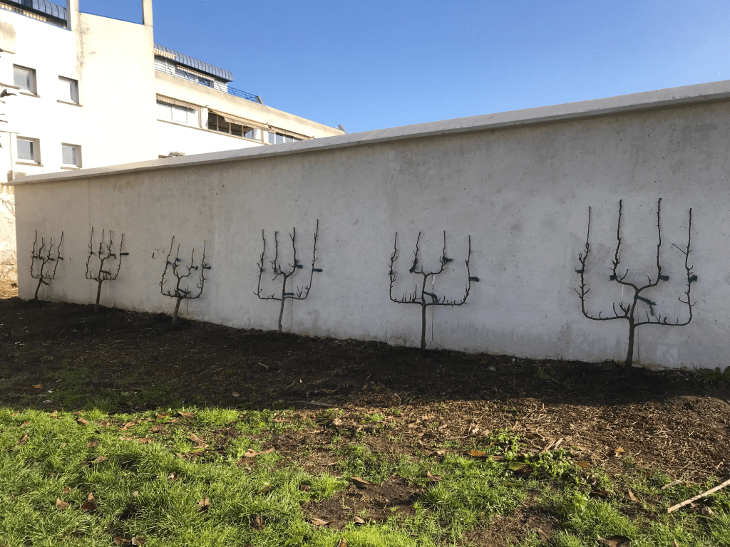 Voici un lien avec un article (en anglais) très intéressant et documenté sur l’horticulture et la protection des arbres fruitiers le long des murs. Exemples à la clé à divers endroits.