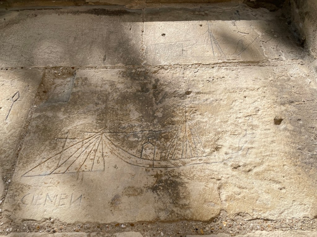 Sur l’extérieur de l’église, au XIXe siècle, des mariniers ont gravé des graffiti représentent les besognes, sortes de ex voto