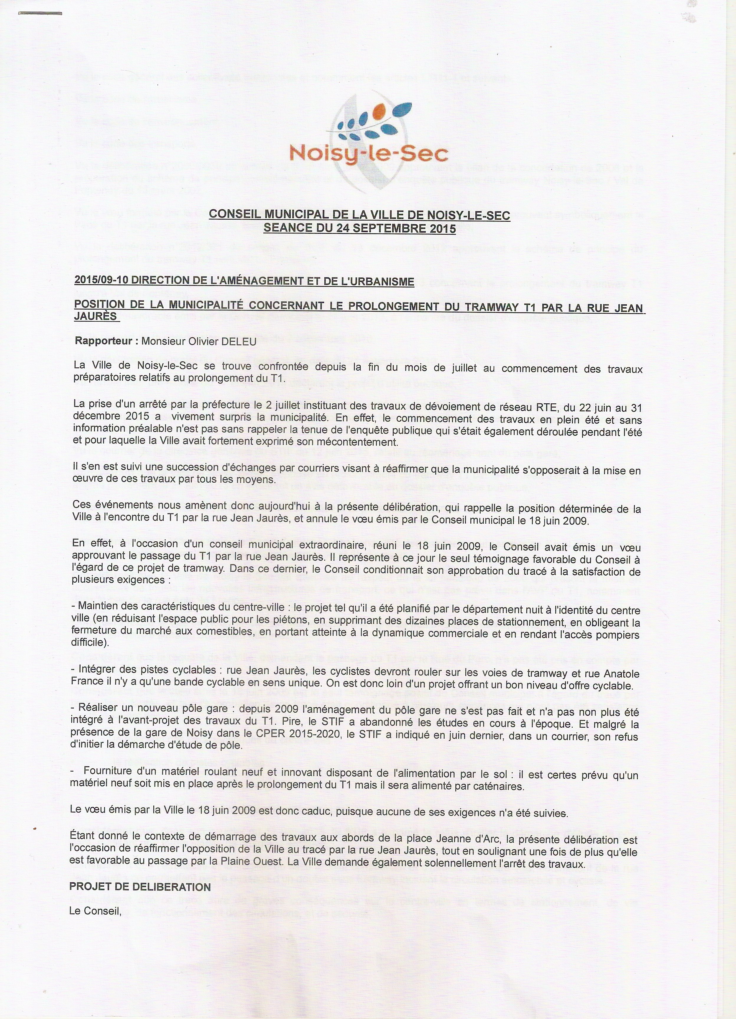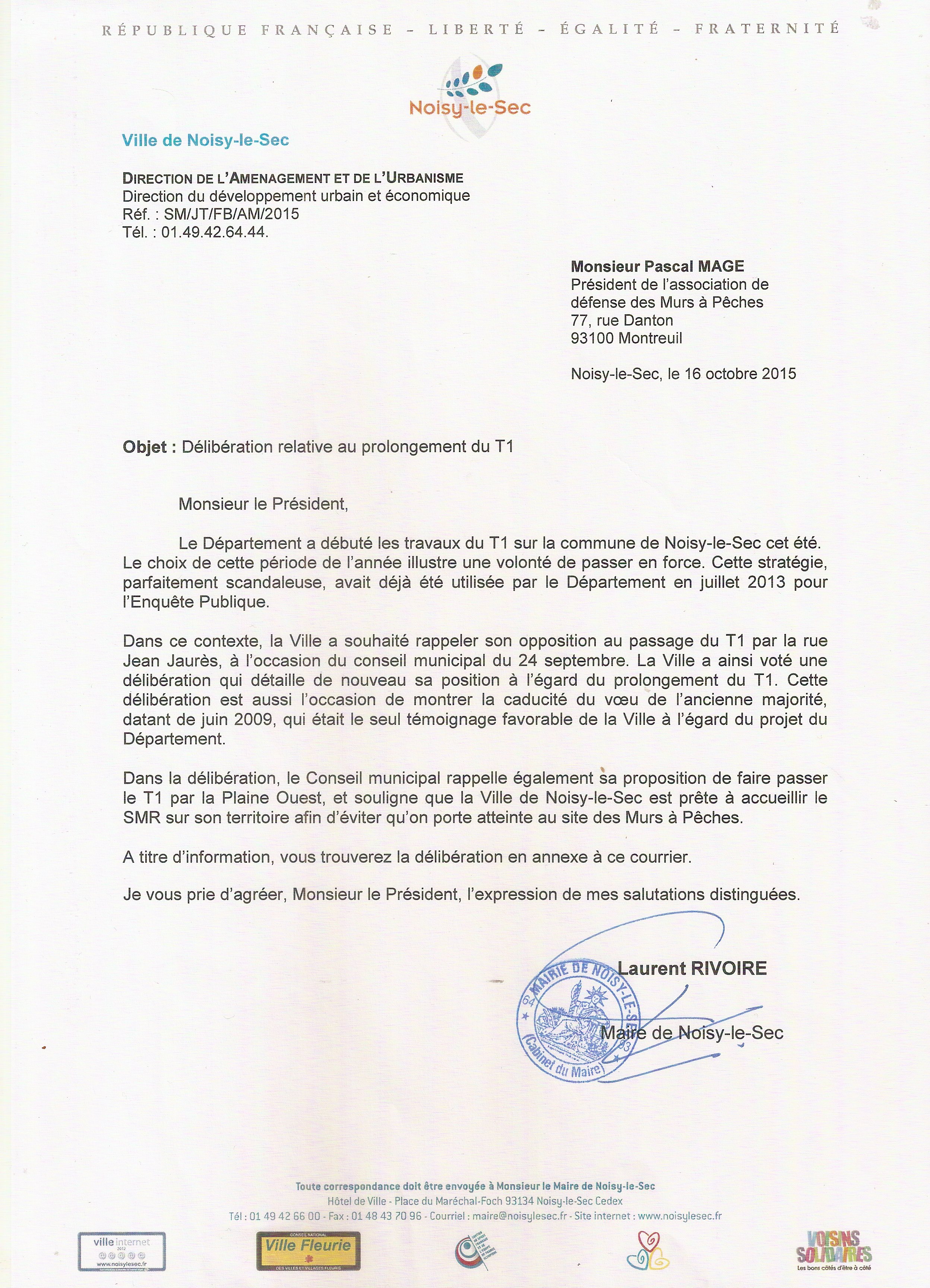 Le maire de Noisy-Le-Sec vient de nous informer de la délibération du conseil municipal : la ville de Noisy-Le-Sec est prête à accueillir le garage à tramway (SMR) sur son territoire, plutôt que sur le site des Murs à Pêches. La parcelle des Murs à Pêches en serait ainsi préservé, affaire à suivre.